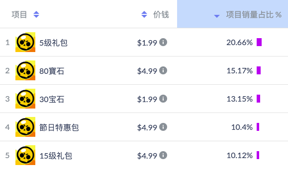 依据量数AI(Measurable AI)的数据,荒野乱斗 这个战略适当有用。一切内购项目中,最受欢迎的单品便是玩家升至等级五时解锁的限时礼包,占总销量20.66%。别的头五名最受欢迎的单品中,也有三项(5级礼包、节日特惠包、15级礼包)归于限时单品。可见玩家对这种限时促销十分受用。