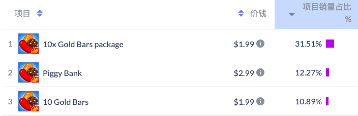 在 糖块传奇 游戏中,失利消息最常引荐的增加功用是额定5次移动次数,价格为9条金条。而依据量数AI的数据,糖块传奇 首三名最受欢迎的内销单品中,其间两项便是面额最小的钱银充值「10金条」,共占内销总销量42.4%。成果反映不少玩家每次充值少数金条,用以购买通关失利后的额定移动次数。这种游戏成功以「不安幻觉」鼓舞用户消费。