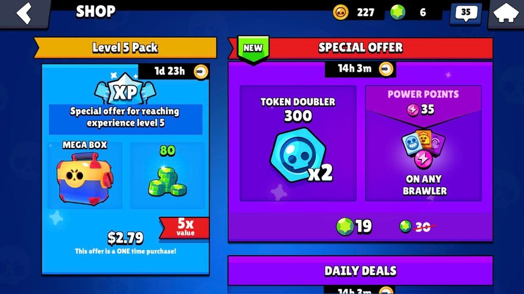 国外 Supercell 最新当红游戏 荒野乱斗Brawl Stars 也采用了这办法。当玩家到达必定等级,游戏便会解锁限时礼包,里边有比往常合算几倍的单品。商铺页面更会写上所剩时限,营建紧迫感,促运用户决计购买。